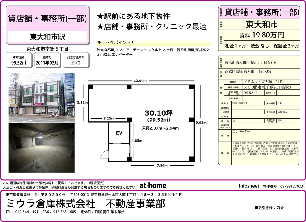 店舗・事務所・クリニックに最適! 【ドミネント東大和 B1】