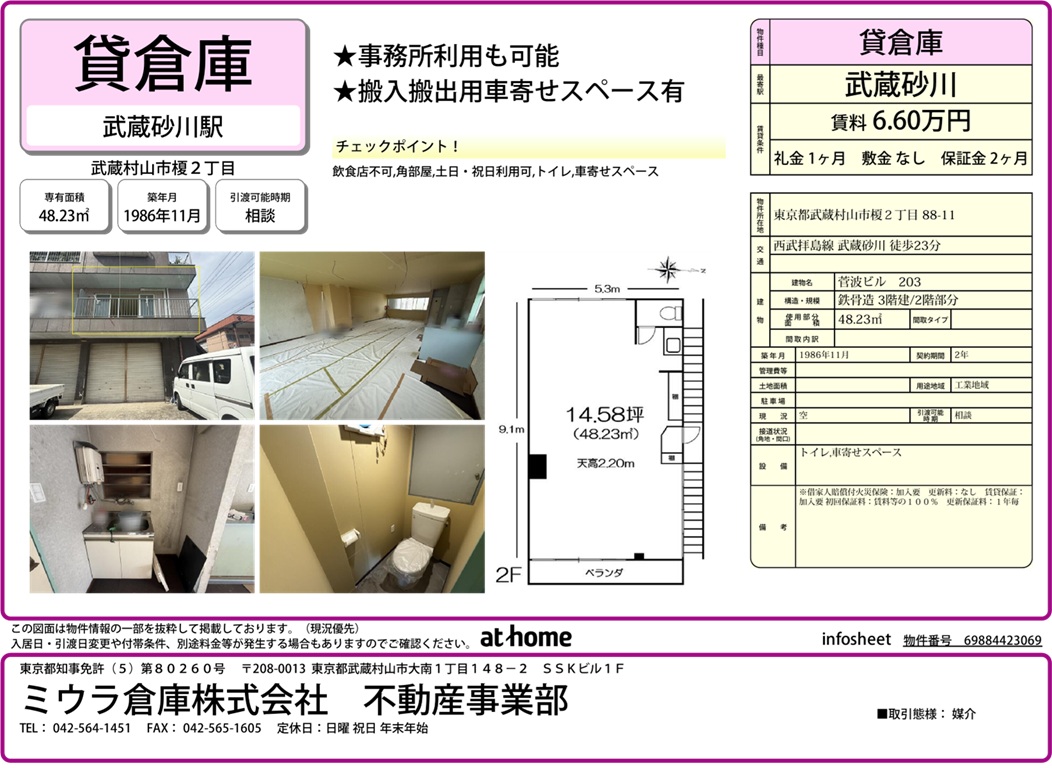 西武拝島線「武蔵砂川駅」徒歩23分 |