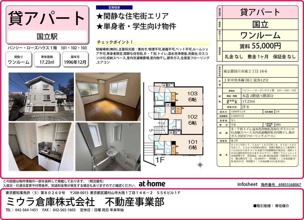 単身者・学生向け物件・閑静な住宅街エリア 【パンシー・ローズハウス1階】